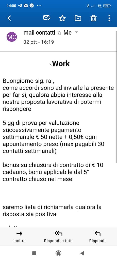 La risposta è stata ” Datemi i vostri dati che vi fisso un’appuntamento con la responsabile,