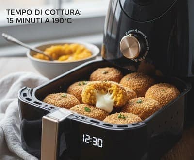 Lasciate intiepidire per qualche minuto prima di servire. Le polpette di riso saranno croccanti allโesterno e filanti allโinterno, perfette come antipasto, secondo piatto o anche come snack sfizioso.